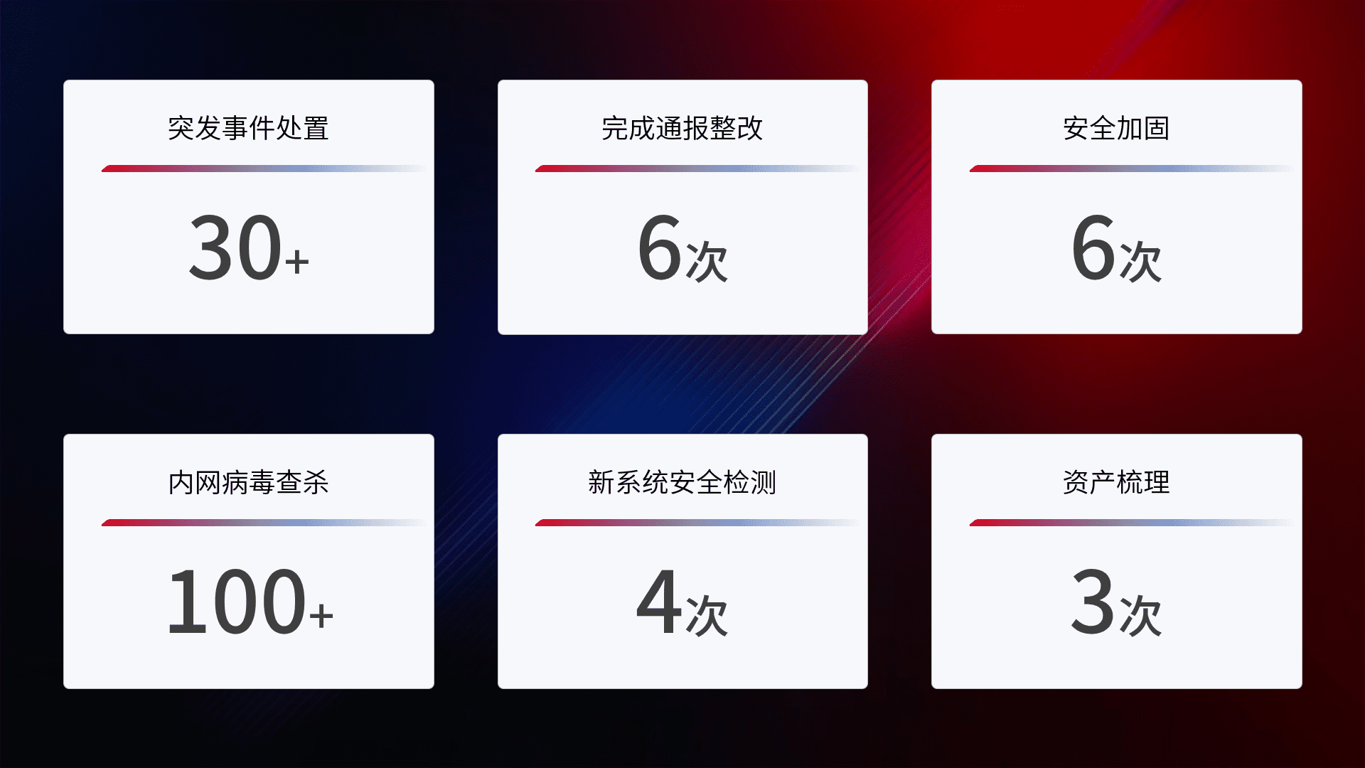 根据客户需求定制整改方案,,,,强化应急演练,,,,提升网络安全事件应对能力。。