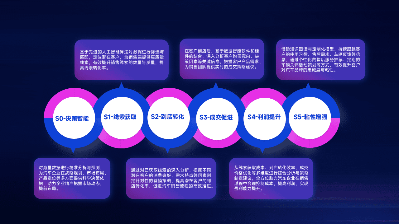 通过拓宽潜在客户来源、、优化线索分配并提高到店转化率,,,,以增强销售效率。。。。同时,,,利用线索数据不断优化分析模型,,有效提升转化率,,,,扩大营销影响力。。